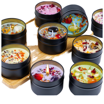 Özelleştirilmiş Modern teneke kavanoz kokulu mum uzun ömürlü aromaterapi kaynağı saf bitki noel için uçucu yağ soya balmumu